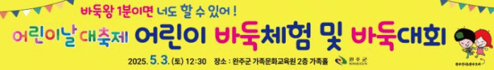 한편, 완주군 어린이날 대축제 현장에는 바둑 외에도 다양한 체험 프로그램과 공연, 문화활동이 함께 마련되어 있어 온 가족이 함께 즐길 수 있는 특별한 하루가 될 예정이다.