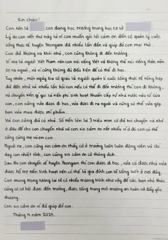 줄이 있는 노트에 베트남 말로 또박또박 편지를 써 내려간 김나영(15, 가명) 학생은, 베트남에서 13년 동안 살다가 3년 전 입국했고, 올해 2월 전입신고와 함께 영암군민이 됐다.