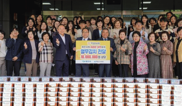이번에 기탁된 열무김치는 목포농협과 목포농협주부대학총동창회 임원 40여 명이 정성을 담아 직접 담갔으며, 저소득가정과 경로당 등에 전달됐다.
