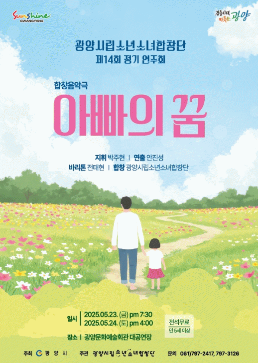김명덕 광양시 문화예술과장은 “바쁜 일상 속에서 가족의 소중함을 잊고 지내는 경우가 많지만, 가정의 달을 맞아 열리는 이번 공연이 그 소중함을 다시 한번 되새기는 계기가 되길 바란다”며 “많은 시민의 관심과 관람을 부탁드린다”고 말했다.