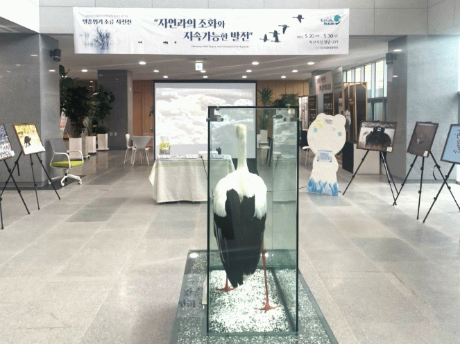 익산시는 세계 생물다양성 보존의 날과 철새의 날을 기념해 20일 시청 1층 현관에서 '멸종위기 조류 사진전'을 개최했다.