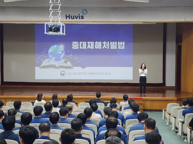 이날 고용부 및 산업안전공단의 전문 강사를 초청해 진행된 교육에서는 휴비스에서 근무하는 근로자 100여 명이 참여했다. 초청된 강사들은 참석한 근로자들에게 △중대재해처벌법의 주요 내용 △최근 산업재해 사례 △작업 중 발생할 수 있는 위험요소 대응 방법 등을 중심으로 실제 사례 기반의 교육을 진행했다.