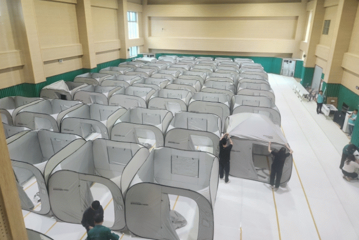 광산구는 대피소에 입소한 주민이 불편함 없이 안정을 취하도록 의료‧식사 등 지원을 제공한다.