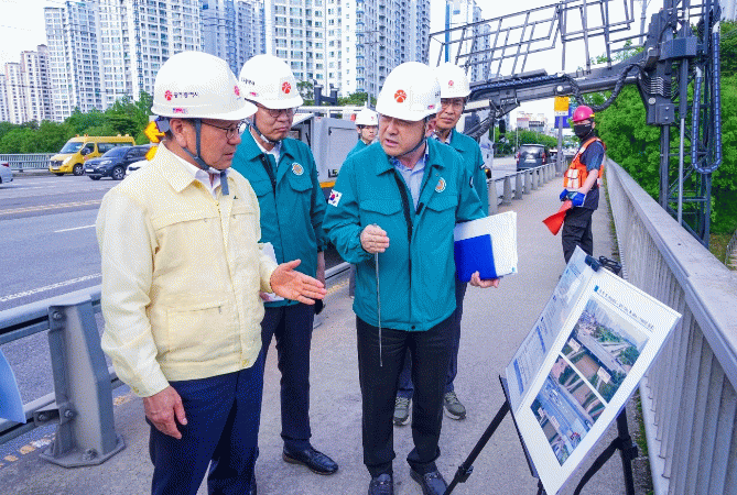 강기정 시장을 포함한 광주시 민관합동점검반은 20일 오후 광산구 하남대교에서 ‘2025년 집중안전점검’의 하나로, 여름철 풍수해 대비 안전점검을 진행했다.