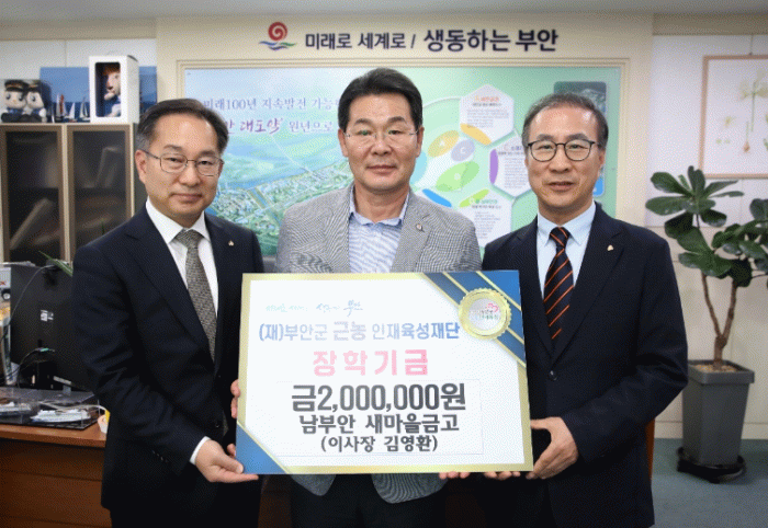 기탁식에 참여한 최지능 새마을금고 중앙회 전북지역본부장과 김영환 남부안 새마을금고 대표는 인재의 소중함에 대해 공감하며, “지역으로부터 받은 사랑을 작은 정성이지만 장학금 기부로 되돌려 드릴 수 있어 기쁘다.”며 “앞으로도 남부안 새마을금고가 지역 청년들을 응원하고 인재를 후원하는 지역 기업으로서 부안군 발전에 기여하겠다.”는 기부의 뜻을 밝혔다.