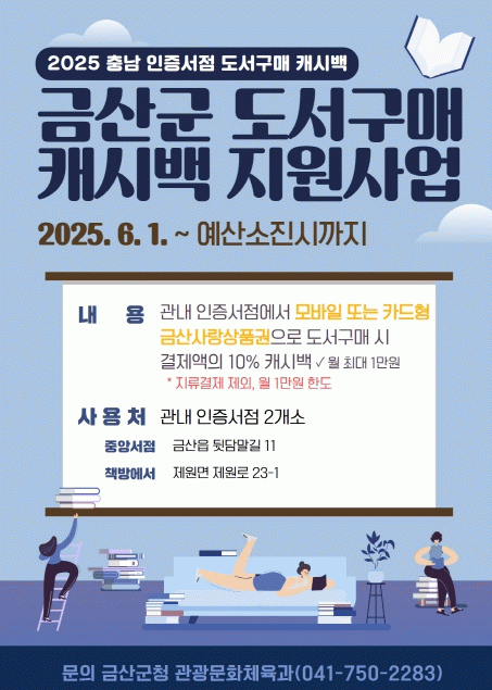 이번 사업은 모바일 또는 카드형 금산사랑상품권으로 도서를 구매하는 경우 결제 금액의 10%를 캐시백으로 지원한다.
