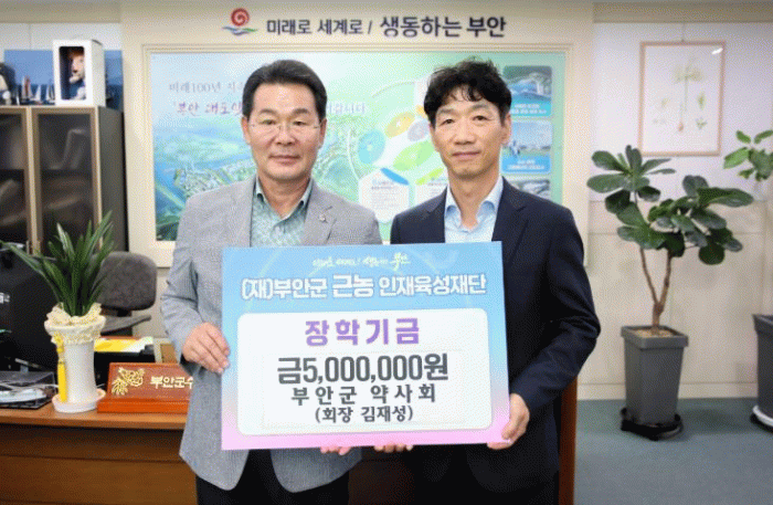 지난 2022년 500만원 기부에 이어 근농인재육성재단을 찾아 준 부안군 약사회 김재성 회장은 “작은 정성이지만 의지가 있는 학생들이 학업의 기회를 갖는데 도움이 됐으면 한다.”며 “부안군 약사회가 앞으로도 지속적인 관심을 갖고 지역 학생들을 응원하겠다.”며 관내 소외계층 및 장학혜택이 필요한 학생들에 대한 애정을 드러냈다.