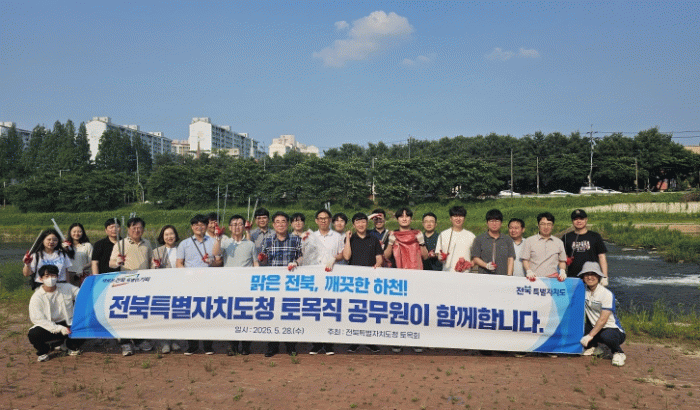 이번 활동은 ‘맑은 전북, 깨끗한 하천, 전북도청 토목직 공무원이 함께합니다’라는 슬로건 아래, 공직자의 책임과 봉사정신을 실천하는 뜻깊은 활동이었다.