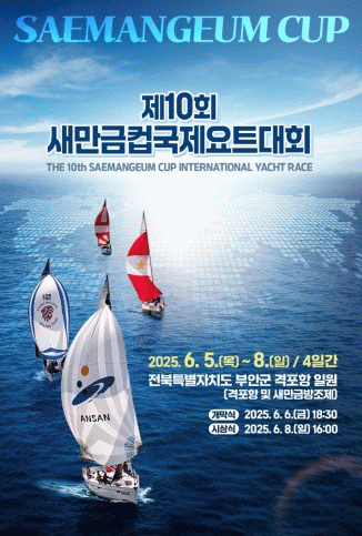 한편, 새만금컵 국제요트대회는 첫째 날인 5일 격포항 요트 계류장을 개방해 1일차 경기가 시작되며, 6일 오후 6시에는 격포항 특설무대에서 개막식이 진행되고 8일에는 시상식과 폐회식이 치러진다.