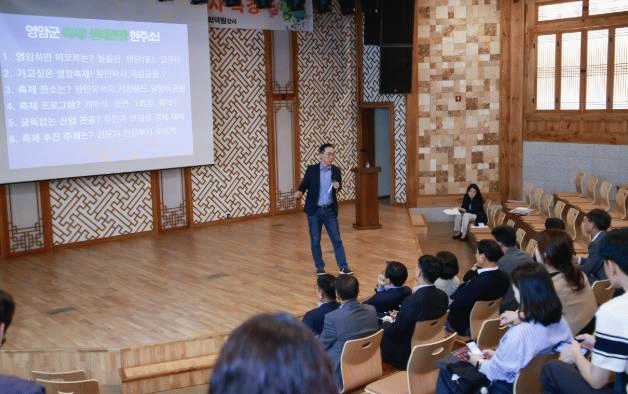 최 강사는 영암군 공직자들에게 순천만국가정원 조성 배경과 추진 과정을 소개하며 생태복원과 도시브랜드 강화의 경험을 소개했다.