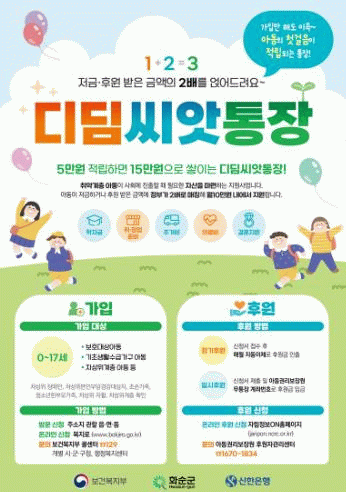 특히, 올해부터는 디딤씨앗통장 가입 대상이 17세 이하 기초수급자 및 보호 아동에서 한부모가족, 차상위계층 아동까지 대폭 확대됐다.