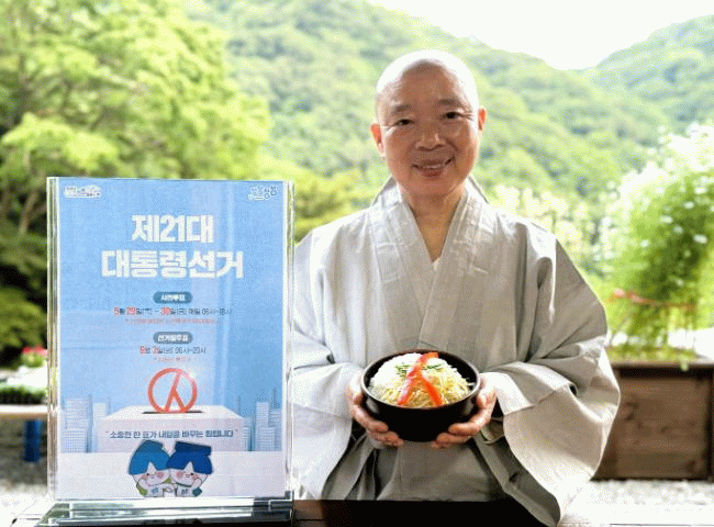 사찰음식에 투표도장을 형상화한 장식을 더했다.