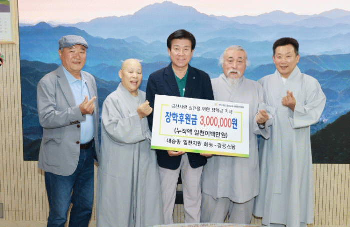 박범인 금산군수는 “누적 1200만 원에 이르는 두 스님의 귀한 뜻에 깊이 감사드린다”며 “기탁해주신 장학금은 학생들의 미래를 위한 소중한 밑거름으로 활용하겠다”고 말했다.
