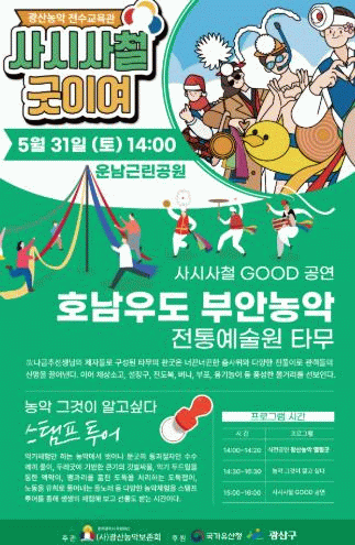 사시사철 굿이여는 시민 누구나 참여할 수 있으며, 자세한 문의는 광산농악 전수교육관으로 문의하면 된다.