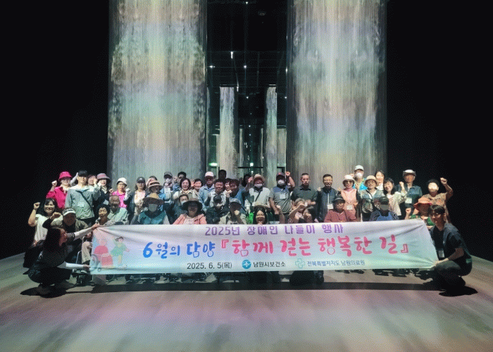 첫 여정은 담양군 딜라이트 전시관 방문으로 시작됐으며, 장애인들이 평소 접하기 어려웠던 미디어 아트 문화체험을 할 수 있는 기회를 제공하고, 이어 메타세쿼이아 길을 산책하며 자연 속에서 휴식과 여유를 만끽하는 시간도 가졌다.