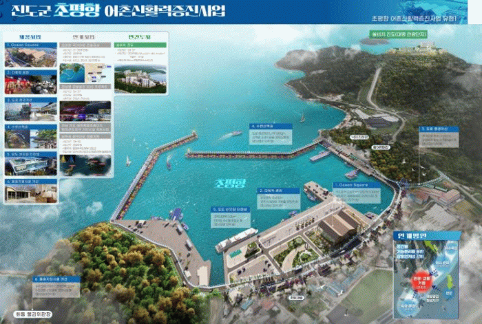 진도군은 동헌항(50억 원)과 초평항(300억 원)의 공모 선정으로 올해에만 총 350억 원의 어촌 개발 사업비를 확보하는 성과를 올렸으며, 이는 어촌 기반 시설(인프라) 개선뿐만 아니라 지역경제 활력과 일자리 창출 측면에서도 큰 의미가 있다.