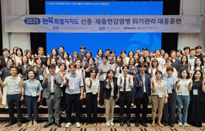전북특별자치도는 27일 고창 웰파크호텔에서 감염병 대응 인력과 경찰·소방·의료기관 등 유관기관 관계자 80여 명이 참여한 가운데, ‘신종‧재출현 감염병 위기관리 대응훈련’을 실시했다.