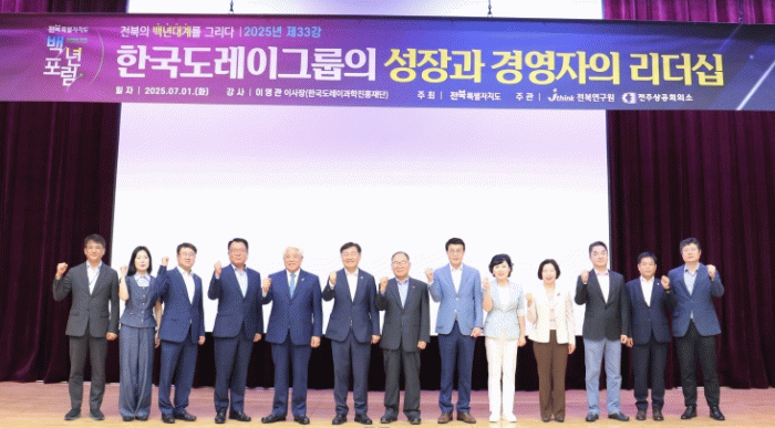 전북연구원(원장 이남호)은 7월 1일 오전 8시 전북특별자치도청 대회의실에서 ‘한국도레이그룹의 성장과 경영자의 리더십’을 주제로 '전북 백년포럼' 제33강을 개최했다.
