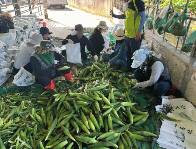 특히 옥수수 찌기 작업에는 청계면 남성리 마을 부녀회가 무료로 봉사를 맡아, 지역 공동체의 따뜻한 정을 더한다.