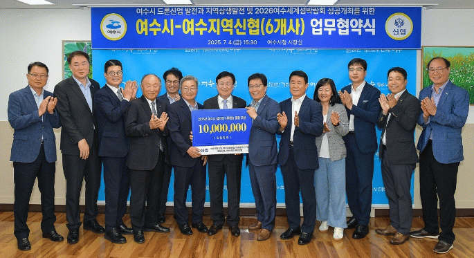 협약에 따라 지역 신협 6개 사(여수제일신협·여수중앙신협·여수참조은신협·쌍봉신협·여수신협·여천신협)는 향후 3년간 섬 지역 드론 배송사업을 후원하며 올해는 1,000만 원 상당의 물품을 후원하기로 약속했다.