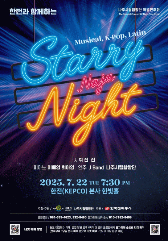 나주시립합창단은 그간 정기연주회와 기획공연을 통해 높은 음악성과 감동적인 무대를 선보이며 지역 문화예술 발전에 기여해 왔다. 이번 ‘Starry Night’ 공연은 기존의 엄숙한 합창 무대에서 벗어나 보다 경쾌하고 감성적인 분위기 속에서 시민과 교감하는 열린 무대로 기획됐다.