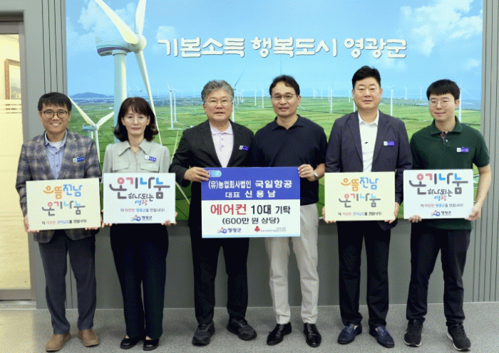 영광군 관계자는“나눔 활동을 통한 기업의 사회적 책임을 적극 실천하고 있는 신용남 대표의 영광군민을 위한 남다른 헌신에 감사를 드리며, 기탁된 에어컨은 각 읍·면사무소를 통하여 폭염으로 어려움을 겪는 취약계층 가정에 신속히 설치되도록 하겠다”고 말했다.