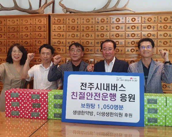 이홍신 생생한약방 원장은 “연일 계속되는 무더위 속에서도 시민들의 편안한 이동을 위해 애쓰시는 버스운전원분들께 조금이나마 도움이 되길 바란다”면서 “앞으로도 지역사회를 위한 나눔 활동을 지속해 나가겠다”고 밝혔다.