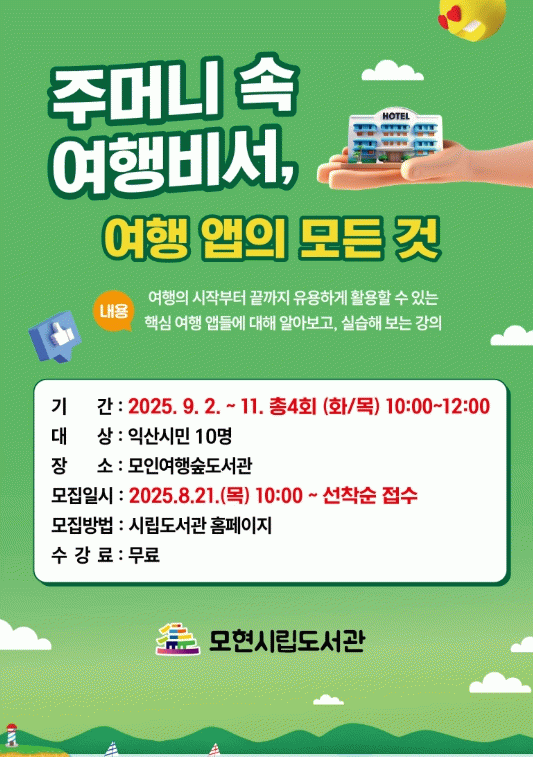 도서관은 최근 스마트폰 하나로 떠나는 여행이 확산되면서, 다양한 여행 앱을 효과적으로 활용하는 실용 교육의 필요성을 느끼고 이번 강좌를 기획했다.