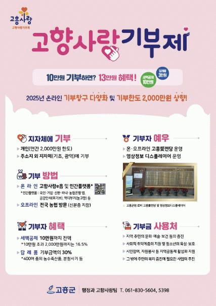 특히 이번 계약은 단순한 기부 창구 확보를 넘어 ▲기부금 모금 ▲답례품 관리 ▲홍보·마케팅을 통합 지원하는 구조로 운영돼, 지역 특산품 소비 촉진과 기부문화 확산이라는 효과를 동시에 거둘 것으로 기대된다.