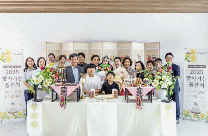 이날 행사는 아이들의 건강과 행복한 앞날을 기원하는 전통 돌잡이 순서로 따뜻한 분위기 속에 진행됐다. 아이들이 활과 판사봉을 잡는 모습에 참석자들은 함께 웃으며 아이들의 첫돌을 축하하고 의미를 공유했다.