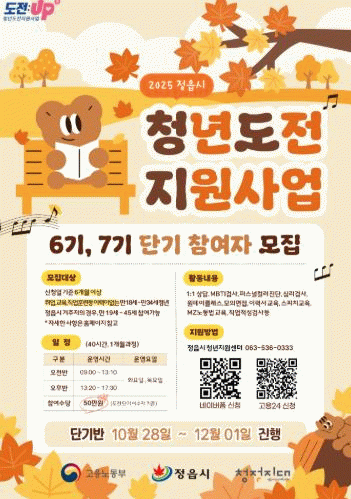시 관계자는 “이번 청년도전지원사업 단기과정이 진로 탐색에 어려움을 겪는 청년들에게 실질적인 도움이 될 것으로 기대한다”며 “2025년 마지막 과정인 만큼 많은 청년이 참여해 성장의 기회를 얻길 바란다”고 밝혔다.