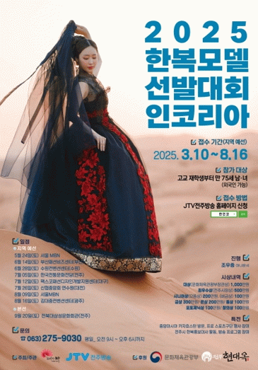 전주시와 JTV전주방송이 공동 주최하는 ‘2025 한복모델선발대회 인 코리아’의 최종 본선이 오는 20일 전북대 삼성문화회관에서 개최된다.