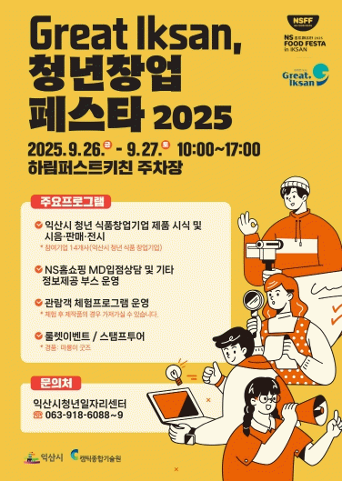 익산시는 '그레이트 익산(Great Iksan) 청년창업 페스타 2025'를 오는 26~27일 하림산업 퍼스트키친 야외광장에서 개최한다고 16일 밝혔다.