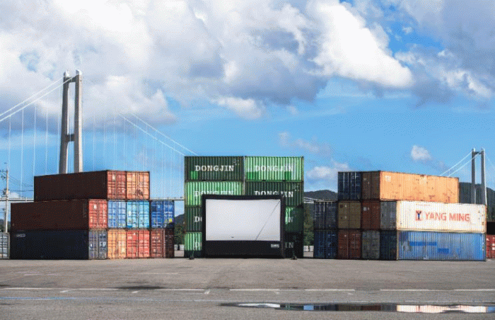 알록달록한 컨테이너가 적재된 광양항의 풍경과 10월의 가을 하늘이 절묘하게 어우러지는 이곳에서는 남도영화제가 준비한 독창적인 프로그램이 관객들을 맞이한다.