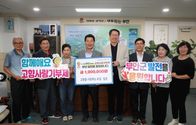 ‘고사모’ 이진수 회장을 비롯한 회원 7명이 부안군청을 직접 방문해 이뤄진 기탁식에서 이진수 회장은 “고향을 떠나 살고 있지만 마음만큼은 늘 부안을 응원하고 있다”며, “앞으로도 고향 발전에 관심을 갖고 다양한 방법으로 함께할 수 있도록 회원들과 뜻을 모아가겠다”고 밝혔다.