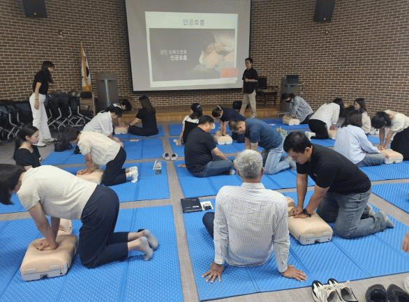 ▲응급처치의 중요성 ▲응급처치 발생 시 대처법 ▲심폐소생술 방법 ▲자동심장충격기 사용 방법 등으로 교육을 실시했다.