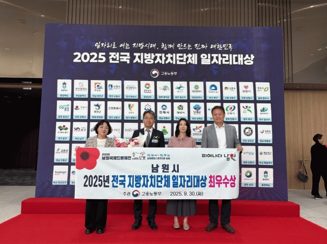 남원시 관계자는 “어려운 경제 여건 속에서 이번 일자리 분야 최우수상 수상은 5년 만의 쾌거”라며 “우리 시 특성과 여건에 맞는 지속가능한 일자리를 창출하도록 노력하며, 특히 청년이 돌아올 수 있는 양질의 일자리 창출을 위한 협력과 소통을 더욱 강화하겠다”라고 밝혔다.
