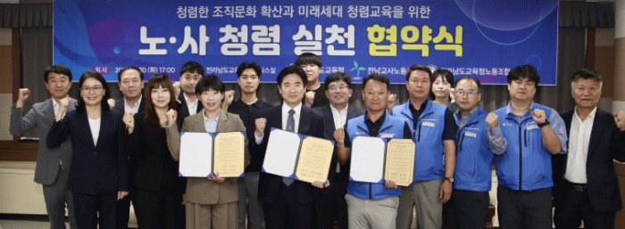 김대중 교육감은 “노동조합과 함께하는 청렴 협약은 우리 전남교육의 신뢰를 높이는 중요한 계기”라며 “학생들에게도 청렴의 가치를 실천으로 보여주겠다”고 밝혔다.