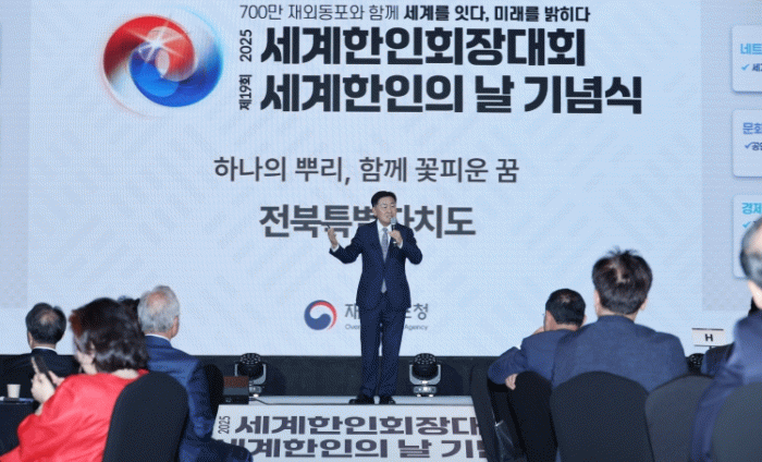이어 "전북특별자치도는 세계 곳곳에 뿌리내린 동포들과 손잡고, 지역과 세계가 함께 성장하는 미래를 만들어가는 데 최선을 다하겠다"고 덧붙였다.