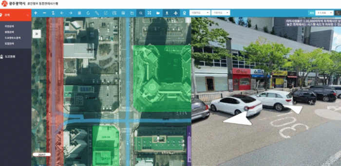 ‘도로점용 관리기능’은 항공사진과 로드뷰 등 최신 공간정보 기술을 활용, 광주 전역의 도로점용 현황을 시각화했다.