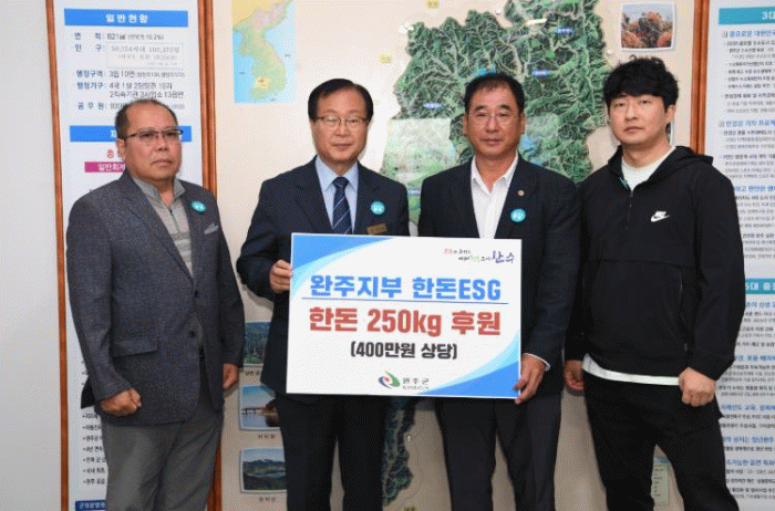 유희태 완주군수는 “매년 잊지 않고 꾸준한 나눔을 실천해주시는 대한한돈협회 완주지부에 깊이 감사드린다”며 “소중한 후원품이 어려운 이웃들에게 온전히 전달될 수 있도록 최선을 다하겠다”고 전했다.