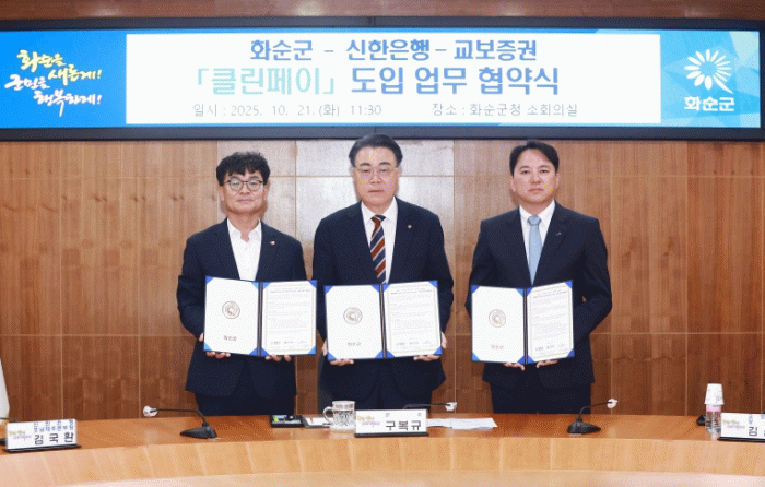 화순군은 지난 21일 구복규 군수와 김국환 신한은행 본부장, 김윤상 교보증권 상무 등이 참석한 가운데 업무협약식을 가졌다.