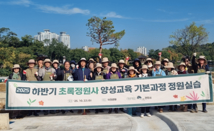 한편 전주시 정원문화센터는 중산공원에 위치한 정원특화 센터로, 지난 9월부터 2025년 하반기 초록정원사 양성교육 기본과정 교육을 진행하고 있다. 이 교육은 오는 11월까지 매주 화요일과 수요일에 진행되며, △식물의 이해와 관리 △정원 조성 △현장 견학 등 총 20개 강의 이수를 통해 초록정원사를 배출하게 된다.