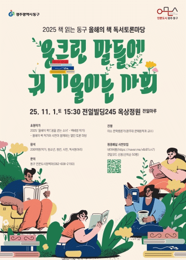 이와 함께 같은 날 오전 11시부터 오후 6시까지 전일빌딩 245 앞 전시마당에서는 ‘책 읽는 동구 결과전시’가 열린다. 금남로 ‘차 없는 거리’ 연계해 펼쳐지는 이번 전시는 광주 동구의 대표 인문도시 사업인 ‘책 읽는 동구’의 성과를 한눈에 보여주는 자리다. 지난 7~8월 진행된 ‘2025 올해의 책 독서공모전’에 참여한 어린이, 청소년, 성인, 학교 단체 등 각계각층의 독서 활동 결과가 시민에게 공개된다.