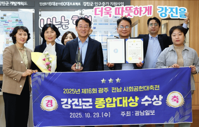 이번 수상은 군민이 중심이 되어 이웃과 지역을 위한 다양한 나눔 활동을 실천해온 강진군의 지속적이고 체계적인 사회공헌 노력이 결실을 맺은 결과다.