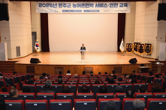 10일 완주군은 군청 문화예술회관에서 농어촌민박 사업자 140여 명을 대상으로 ‘2025년 농어촌민박 서비스·안전교육’을 실시했다.