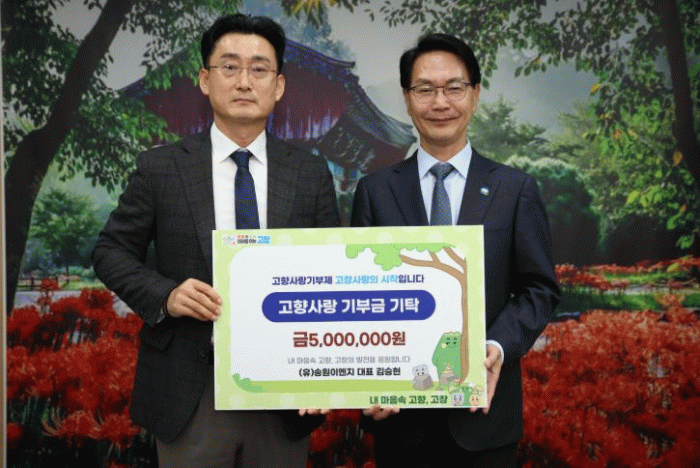 (유)송원이앤지 김승현 대표 역시 “고창군과의 지속적인 협력 관계를 이어가고 싶은 마음에서 기부를 결정했다”며 “고향사랑기부가 고창 발전의 긍정적 선순환으로 이어지길 기대한다”고 전했다.
