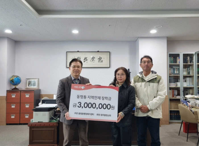 동명교회는 올해로 7년째 장학사업을 이어가고 있으며, 최근 동명교회에서 장학금 전달식을 열고 가정형편으로 학업에 어려움을 겪고 있는 관내 학생 5명에게 3백만 원의 장학금을 전달했다.