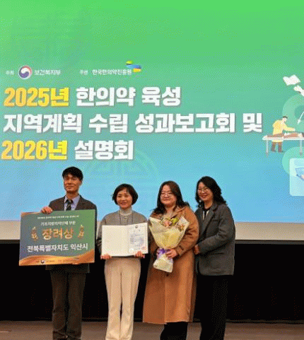 익산시는 18일 열린 '2025년 한의약 육성 지역계획 우수사례 성과보고회'에서 보건복지부 장관상을 수상했다.