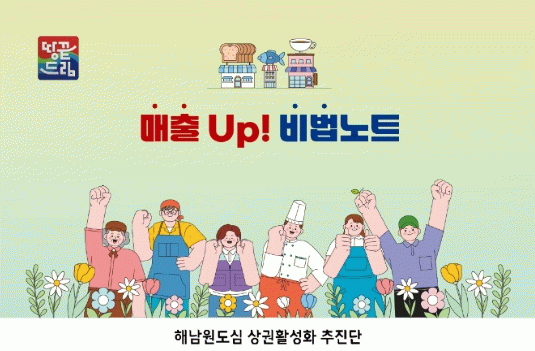 ‘매출 UP ! 비법노트’는 해남원도심 상권활성화 추진단의 홈페이지의 해남로컬매거진 메뉴에 들어가면 e-북으로도 볼 수 있다. 관련 문의는 전화로 하면 된다.